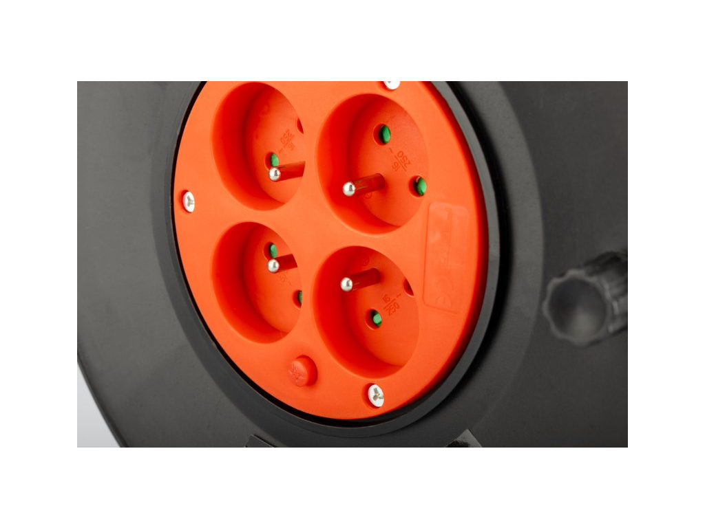 - kovová, masivní konstrukce bubnu pro snadnou manipulaci a stabilní instalaci, cívka bubnu z kvalitního odolného ABS plastu