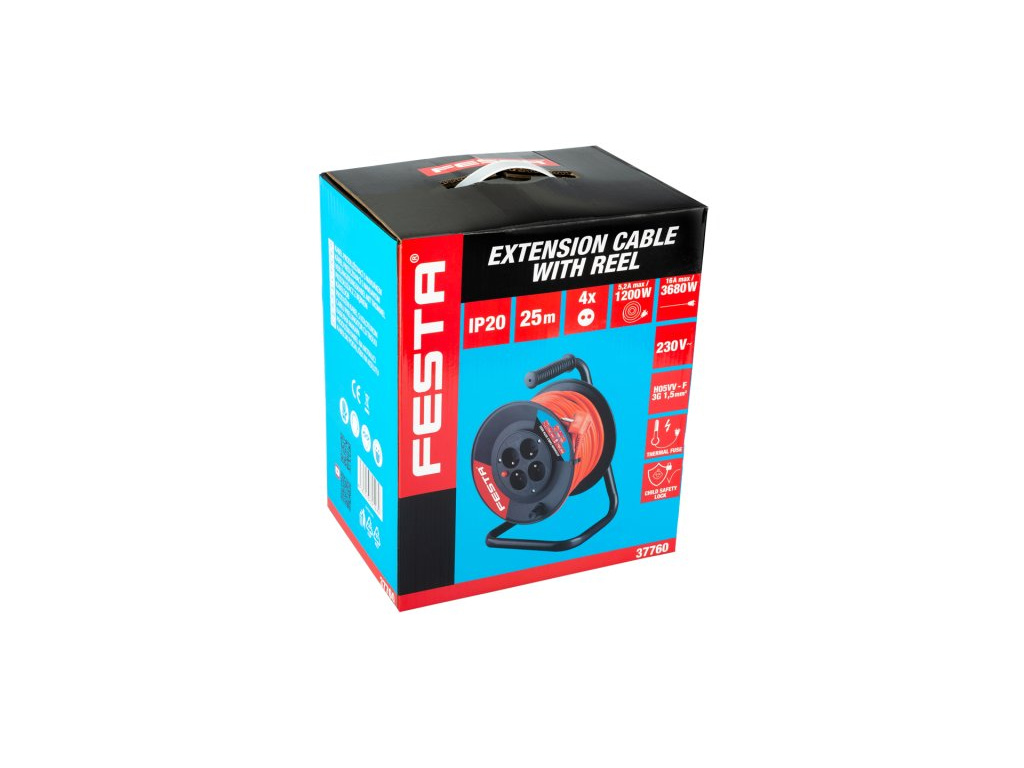 - maximalní zatížení - rozvinutý buben 3680 W (16 A) / navinutý max 1200 W (5,2 A)