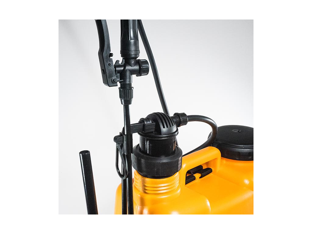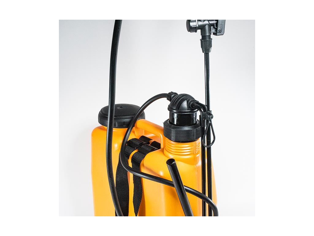 Tlakový postřikovač zádový s nádržkou 16 l postřiku pro dlouhou práci bez častého doplňování. Možnost nastavení síly průtoku tryskou a trvalý nebo krátkodobý postřik. Nastavitelné popruhy a možnost přestavění páky na pravou stranu (pro leváky). Regulátor průtoku na rukojeti. Vysokotlaká nádoba odolná proti chemikáliím.