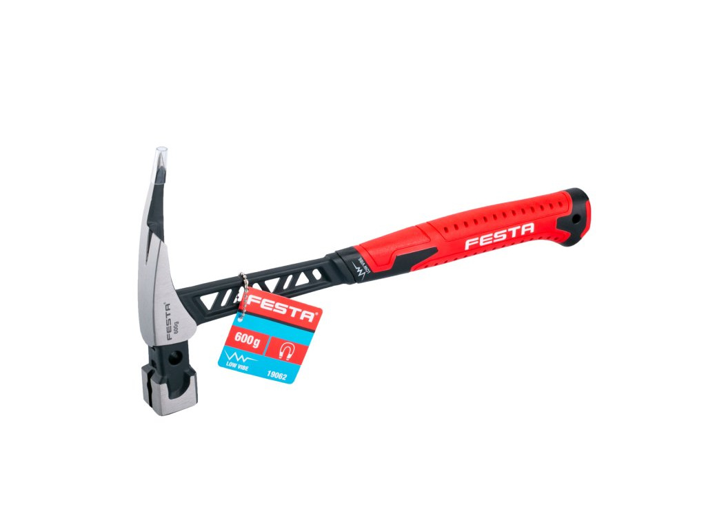 - speciální patentovaná konstrukce kladiva ve spojení s dvoukomponentní rukojetí výrazně snižuje vibrace, otřesy a rázy vznikající při práci