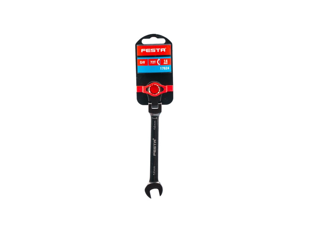 Ráčnové klíče FESTA s kloubem pro použití pod úhlem s výhodou rohatky (ráčny) jsou vyrobeny kováním z kvalitní chromvanadiové oceli. Tato ocel povrchově upravená matným tvrdochromem pro dosažení optimální povrchové tvrdosti a odolnosti vůči korozivním vlivům. Rohatku ráčny klíče tvoří 72 kalených zubů, záběr po 5-ti obloukových stupních. Kvalitou, tvrdostí a přesností přesně odpovídají normě DIN/ISO.