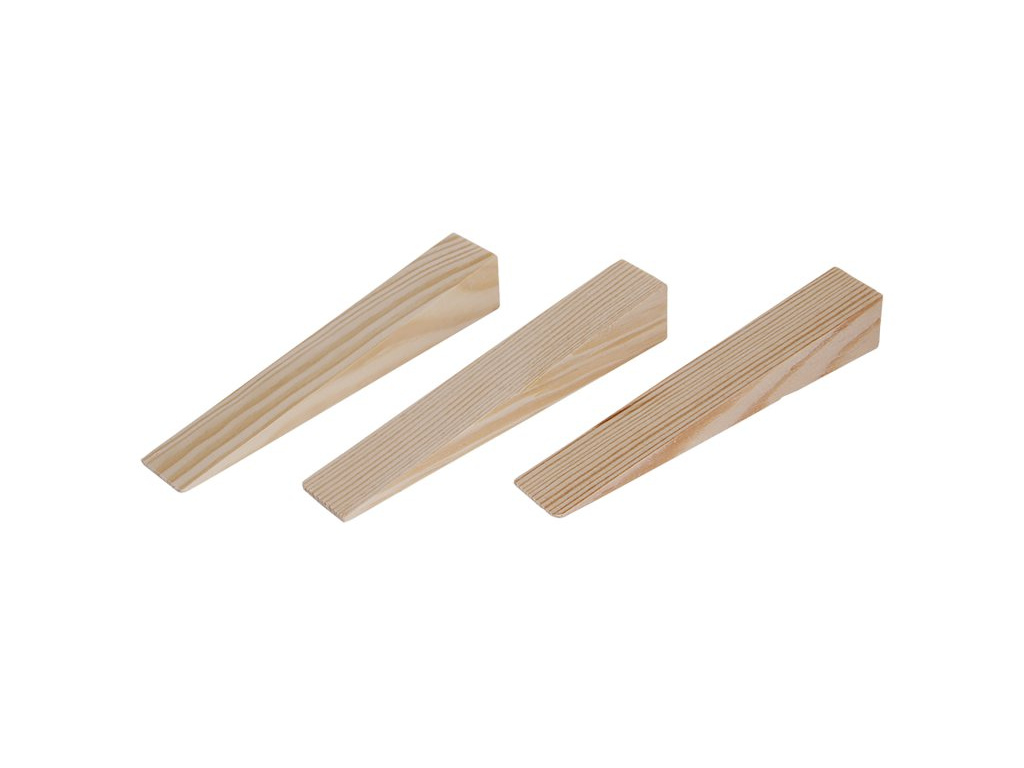 Dřevěné klínky (smrk), rozměr: 150 x 25 x 1-25 mm, množství: 8 ks, použití: pro osazování oken, zárubní a kovových konstrukcí, balení: blistr s eurootvorem.