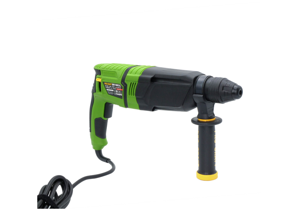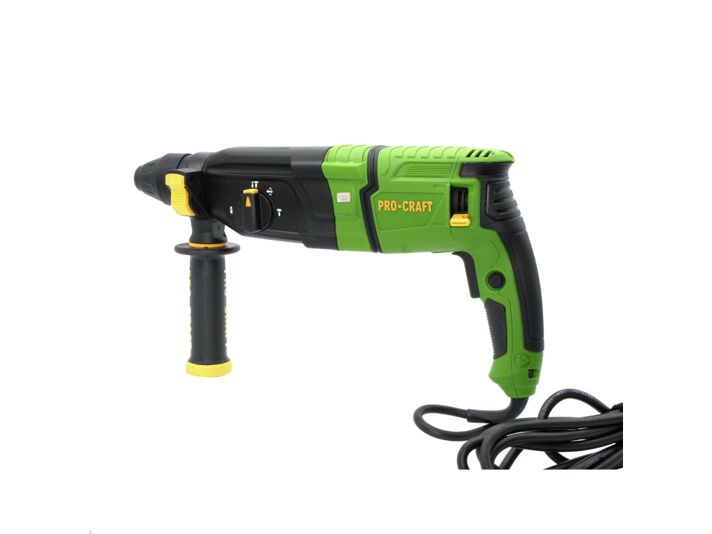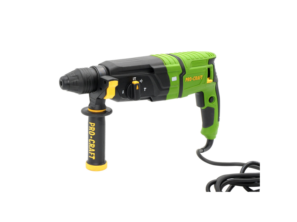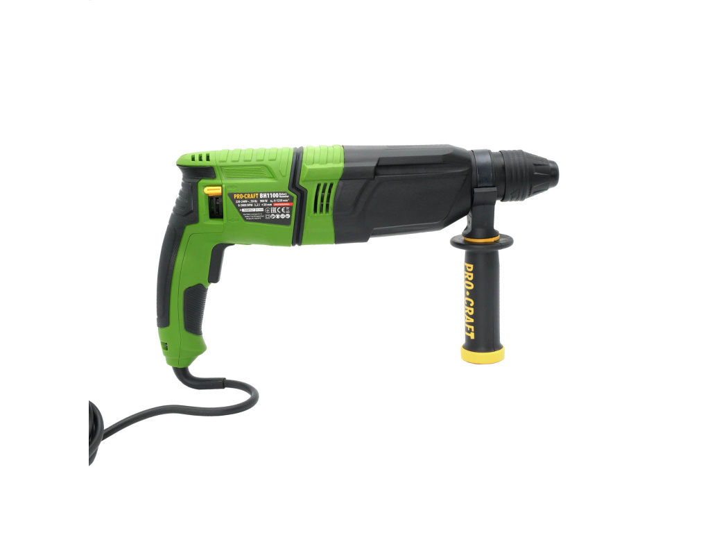 Kombinované kladivo Procraft BH1100 je určeno k práci se stavebními materiály jako jsou cihly, beton nebo kámen. Tři přepínatelné funkce zajišťují všestranné využití kladiva: vrtání s příklepem, sekací funkce. Regulace otáček umožňuje nastavení optimálních parametrů při práci s různými materiály. Díky konstrukci může být použito pro domácí a poloprofesionální potřeby. Pravý a levý chod zajišťuje snadné uvolnění zaseknutého vrtáků. Jako příslušenství lze použít SDS Plus příklepové vrtáky do betonu, ploché - špičaté nebo tvarované sekáče na stavební materiály, hadovité (spitálové) vrtáky a dláta do dřeva. Součástí dodávky je plochý a špičatý sekáč, tři vrtáky a přepravní kufr. Balení karton.
