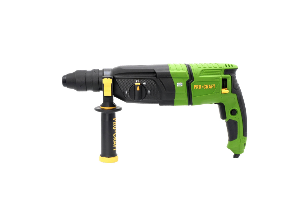 Kombinované kladivo Procraft BH1100 DFR je určeno k práci se stavebními materiály jako jsou cihly, beton nebo kámen. Tři přepínatelné funkce zajišťují všestranné využití kladiva: vrtání s příklepem, sekací funkce. Regulace otáček umožňuje nastavení optimálních parametrů při práci s různými materiály. Díky konstrukci může být použito pro domácí a poloprofesionální potřeby. Pravý a levý chod zajišťuje snadné uvolnění zaseknutého vrtáků. Jako příslušenství lze použít SDS Plus příklepové vrtáky do betonu, ploché - špičaté nebo tvarované sekáče na stavební materiály, hadovité (spitálové) vrtáky a dláta do dřeva. Součástí dodávky je plochý a špičatý sekáč, tři vrtáky a přepravní kufr. Balení karton.
