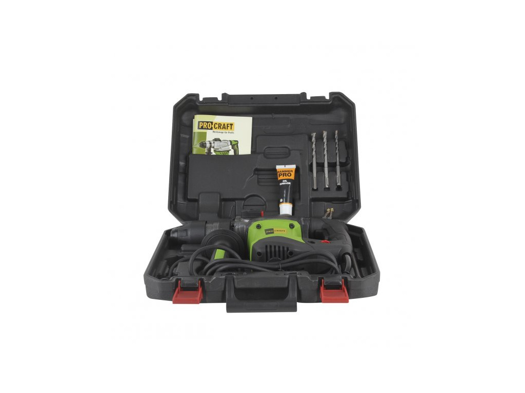 Kombinované kladivo Procraft BH2200 je určeno k práci se stavebními materiály jako jsou cihly, beton nebo kámen. Tři přepínatelné funkce umožňuje všestranné využití kladiva: vrtání, vrtání s příklepem, sekací funkce. Regulace otáček a příklepů umožňuje nastavení optimálních parametrů při práci s různými materiály. Protože kladivo má rukojeť tvaru „D“, chrání vaši ruku před zraněním a zajišťuje pohodlné držení. Jako příslušenství lze použít SDS Plus příklepové vrtáky do betonu, ploché - špičaté nebo tvarované sekáče na stavební materiály, hadovité (spitálové) vrtáky a dláta do dřeva. Součástí dodávky je plochý a špičatý sekáč, tři vrtáky a přepravní kufr. Balení karton.