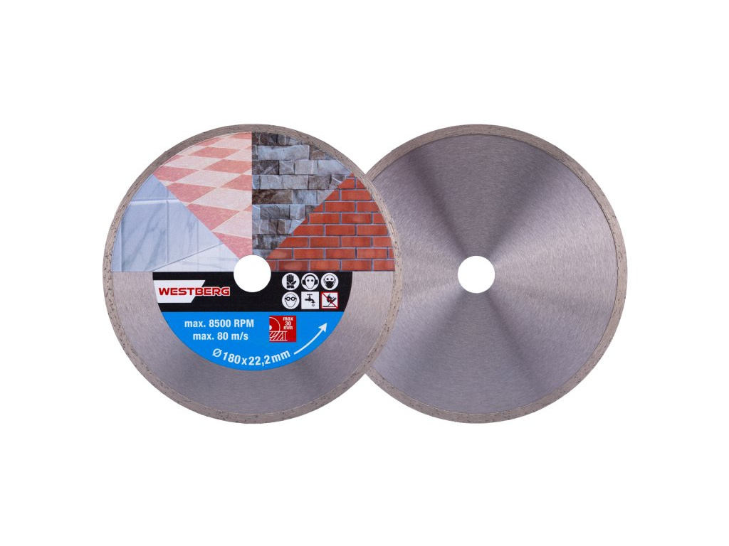 Diamantový kotouč DIAMANT, provedení : PLNÝ - celoobvodový, kvalitní diamantová vrstva s vysokým obsahem diamantového prachu, přesné zpracování - napojení na nosný disk kotouče odolávající vysokým teplotám, použití : určený pro mokré i suché řezání dlažby a obkladů, betonu, cihel, zdiva, žuly, mramoru, kamene, skla, keramiky, balení : blistr s eurootvorem, přiložen redukční kroužek z 22,2 na 20 mm, rozměry : uvedeny v názvu výrobku.