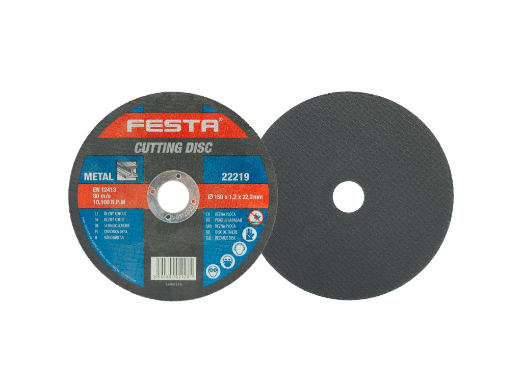 Druh Zrna: Korund Pojivo: Syntetické pryskyřice na bázi aldehydu Provedení: rovný Max. Pracovní rychlost: 80m/s Max. přípustné otáčky: 10200 1/min Pro zvýšení pevnosti armován dvouvrstvou sklotextilní vložkou. Použití na kov, litinu, NEREZ.