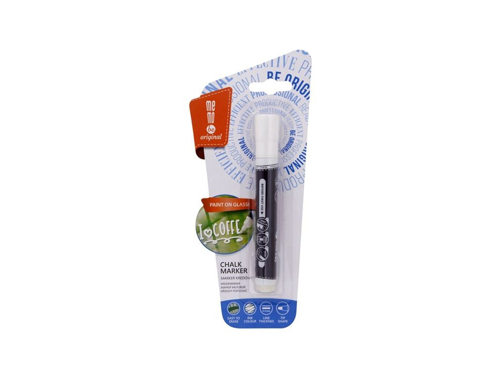 Křídový popisovač vhodný ke psaní či dekoračnímu označení na skleněných a křídových tabulích Před použitím důkladně protřepejte a hrot několikrát přitlačte na papíře, aby se napustil křídouPro odstranění z povrchu použijte vlhký hadříkKřídový inkoust na bázi vody Bez zápachuŠíře stopy: 3,0 - 4,0 mmKulatý hrot