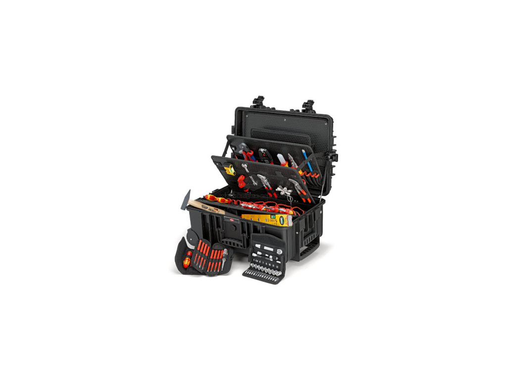 Osazeno 12 kusy nářadí KNIPEX a 90 značkovými nástroji. Max. zatížitelnost: 35 kg. Objem: 45 litrů. Pro velmi náročné podmínky použití: prachotěsný, vodotěsný, vzduchotěsný a odolný vůči teplotám. Plynový tlumič v závěsu. Pneumaticky tlumené víko. Přihrádka na dokumenty; nástrojové desky vyrobené ze špínu odpuzujících dvoustěnných plátů z PP s kapsami a pásy na nářadí. S celkem 147 možnostmi zasunutí. Dno ve tvaru vaničky s hliníkovými vložkami. Výsuvná teleskopická rukojeť pro pohodlnou přepravu. Velká kolečka s lehkým chodem. Vnější rozměry (Š × V × H): 609 × 428 × 263 mm; vnitřní rozměry (Š × V × H): 540 × 364 × 229 mm.