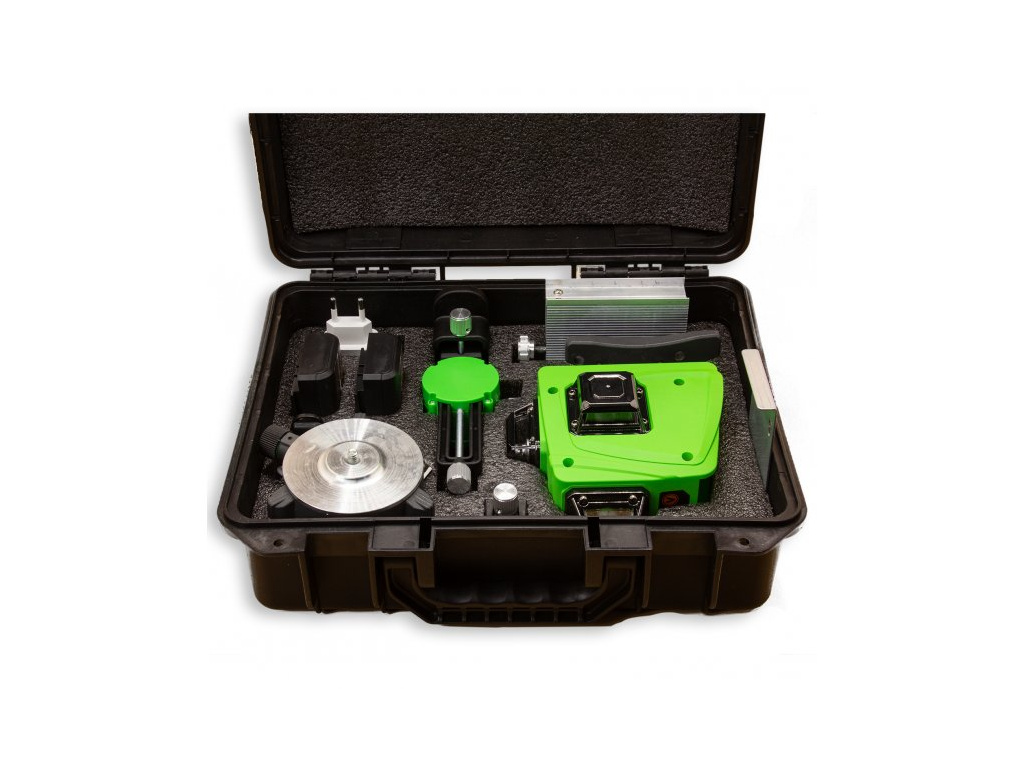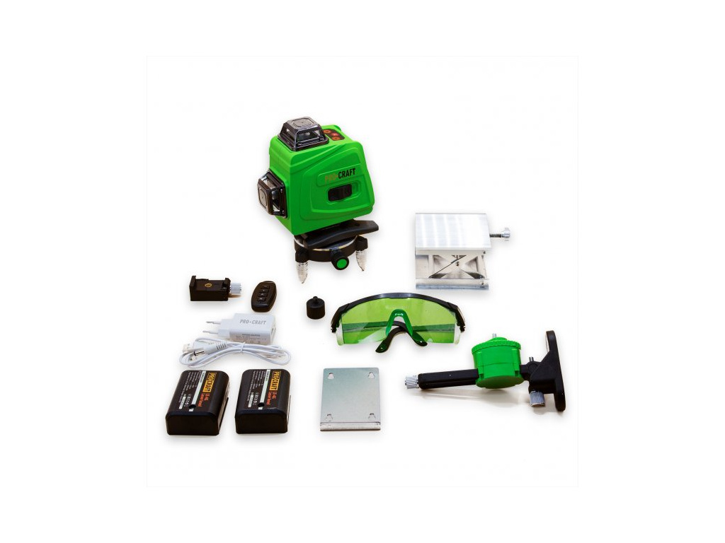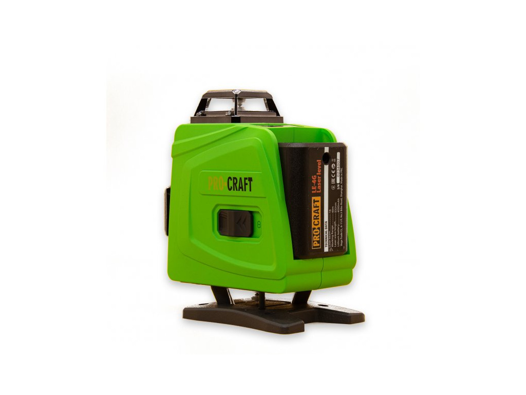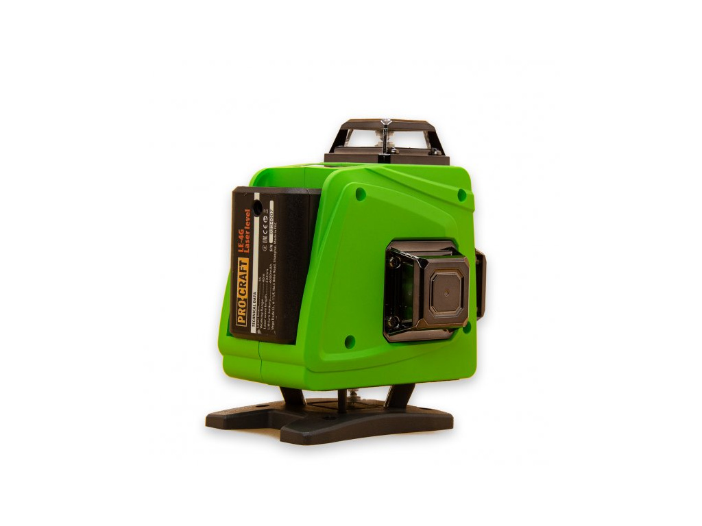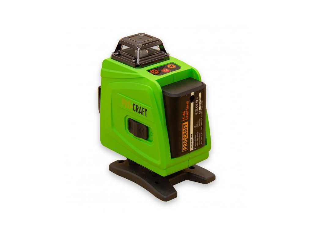 Zelený liniový laser Procraft LE-4G je určen k stanovení svislých a vodorovných linií v interiéru. Zelená čára laseru zaručuje lepší viditelnost na denním světle. Možnost nainstalování na stativ se závitem 1/4». Univerzální napájení přímo ze sítě nebo pomocí dodávaných akumulátorů. Díky automatické samonivelaci v rozsahu ±3° usnadní a zrychlí práci. Vertikální i horizontální úhel vyzařování 360° umožňuje práci v rozměrných a světlých prostorech. Součástí dodávky jsou 2 akumulátory, otočný magnetický držák, dálkový ovladač, ochranné pouzdro, laserové brýle a napájecí adaptér.Druhý spodní paprsek pro horizontální měření samonivelace. Balení karton.