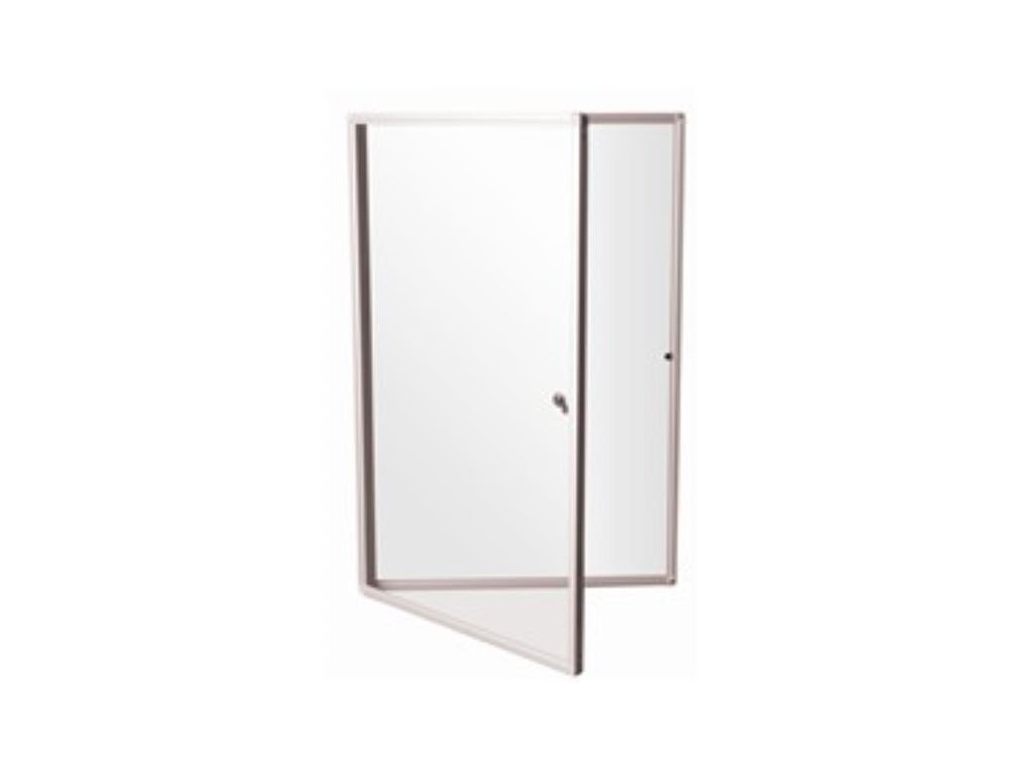 bílá magnetická tabule krytá akrylátovým sklem hliníkový rám s plastovými rohy v šedé barvě zámek se dvěma klíči chrání materiály před poškozením či odcizením hloubka: 17 mm včetně montážní sady na stěnu rozměr: 90x120 cm ZÁRUKA: 24 měsíců