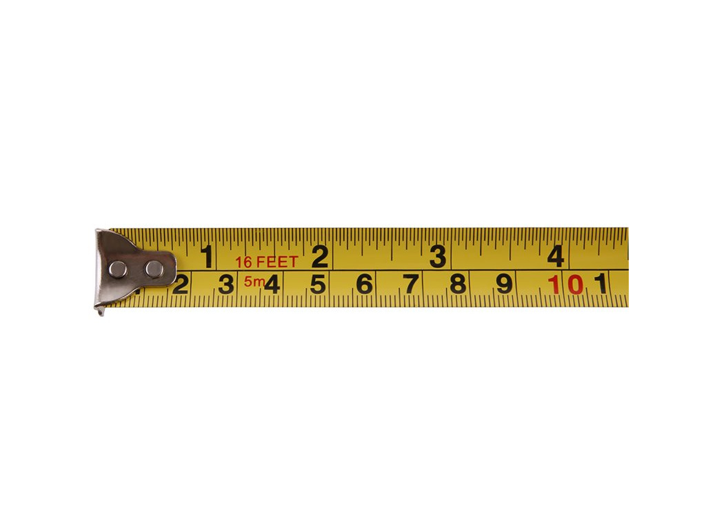 kalená páska, dělená stupnice na pásce metrická i palcová, poutko, klip na opasek