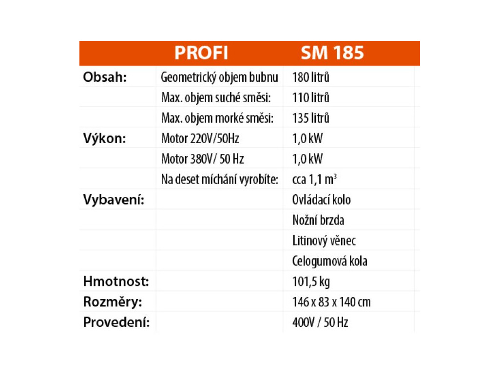 Míchačka LESCHA SM 185S 180l 400V DS BR