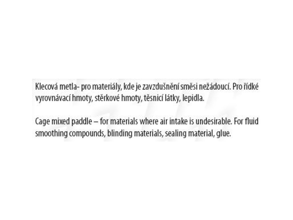 - použití : klecová metla se používá pro materiály, kde je zavzdušnění směsi nežádoucí - pro řídké vyrovnávací hmoty, těsnící látky, lepidla na YTONG, atd.