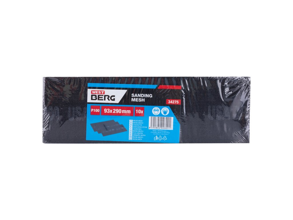 Brusná mřížka 93 x 290 mm, zrnitost 100, 10ks/sada. , nosná tkanina ze