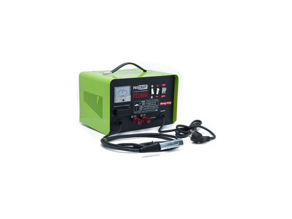 Procraft PZ280A je výkonná nabíječka autobaterií kombinovaná se startovacím zdrojem, která je ideální pro osobní i nákladní automobily, motocykly, dodávky a další vozidla. Díky vysokému nabíjecímu proudu až 20 A a startovacímu proudu 280 A zvládne spolehlivě dobíjet a nastartovat i velké motory.