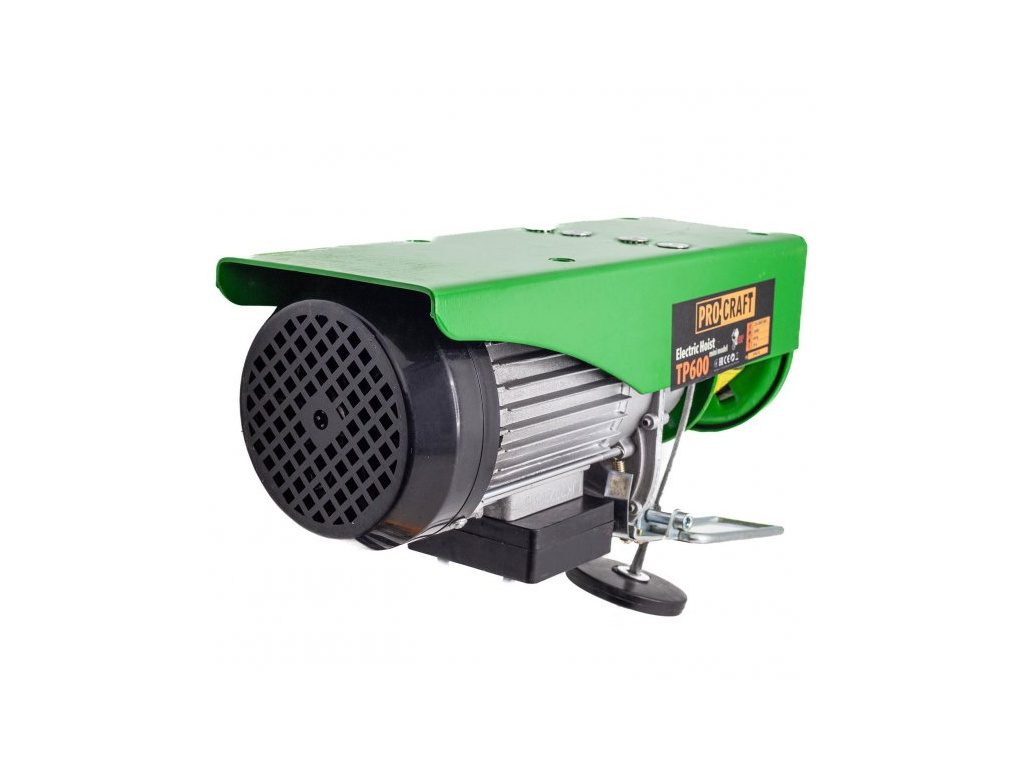 Naviják lanový elektrický Procraft TP600 Součástí balení: 2 úchytky, ocelové lano. Příkon (W) 1200 Maximální nosnost bez kladky/s kladkou (kg) 300/600 Výška zdvihu bez kladky/s kladkou (m) 12/6 Rychlost zdvihu bez kladky/s kladkou (m/min) 10/5