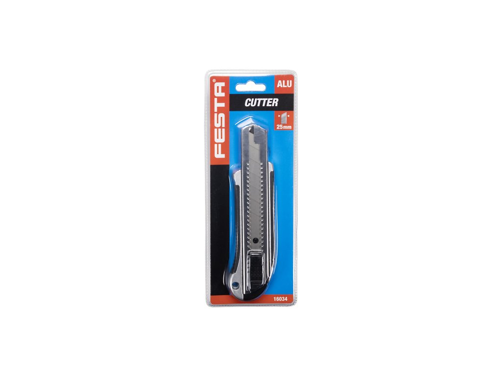 Profesionální odlamovací nůž, přesné zpracování - kvalitní materiály a ergonomie, odolný a přesný posuv s automatickou aretací, pojistná šroubková aretace, šířka čepele 25mm, baleno na blistru.