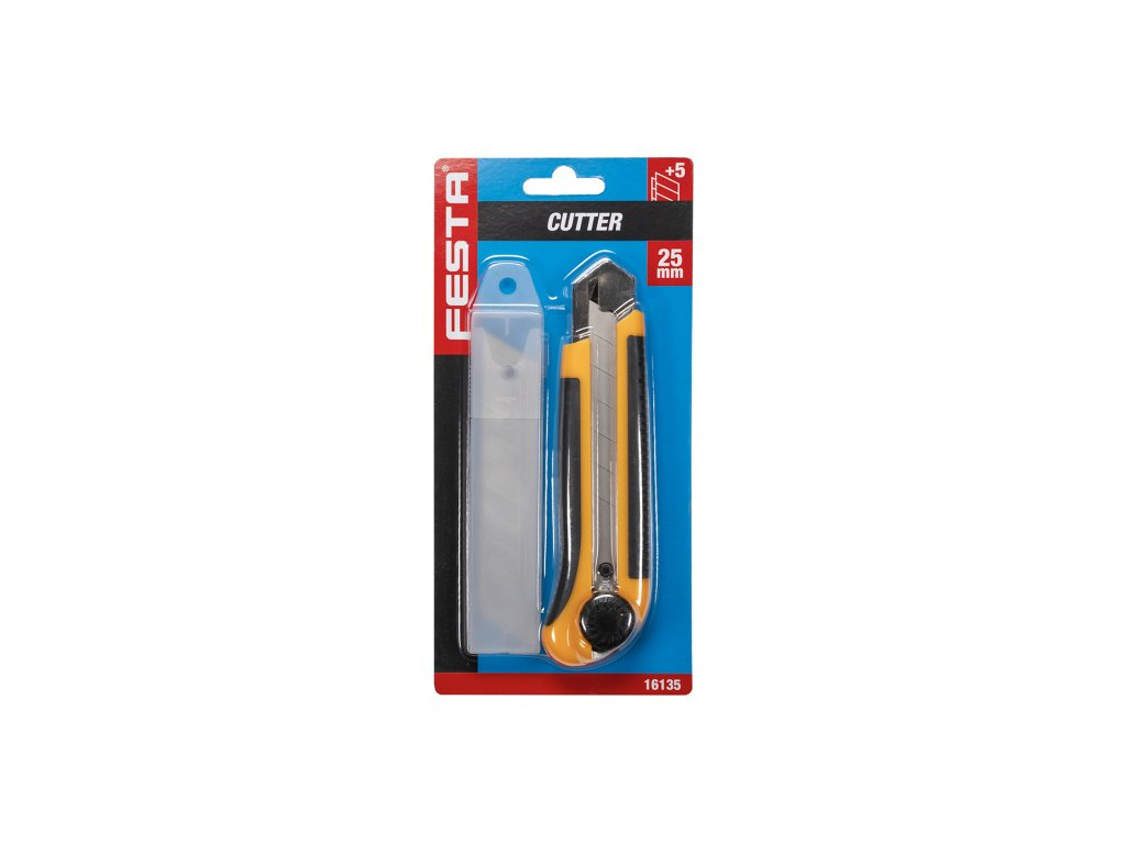 Odlamovací nůž FESTA 25mm, kvalitní materiály, kovová lišta, odolná šroubková aretace, 5 náhradních břitů, blistr.