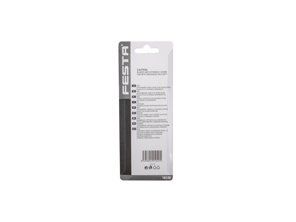 Odlamovací nůž FESTA 18mm, kvalitní materiály, automatická aretace s pojistkou, do nože lze umístit až 2 náhradní břity, blistr.