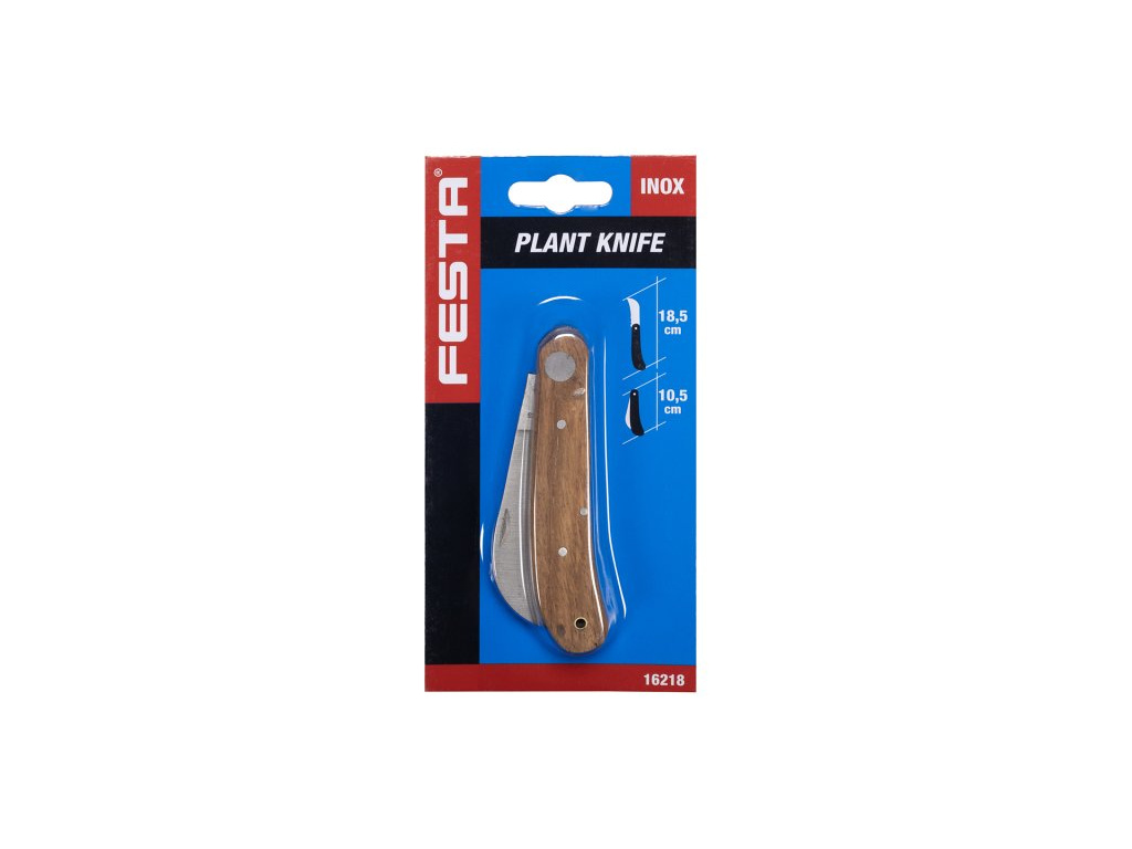 Roubovací zavírací nůž, silná nerová čepel, dřevěná rukojeť s kvalitním nýtovaním, k roubování, řezání a úpravě dřevin a rostlin, délka čepele 105mm, blistr.