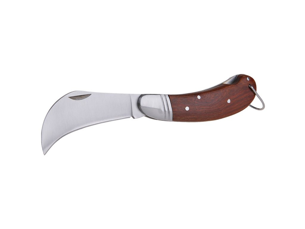 Štěpařský zavírací nůž, silná nerezová čepel, dřevěná rukojeť s kvalitním nýtovaním, univerzální zahradnický nůž pro očkování - roubování - řezání a úpravu dřevin a rostlin, délka čepele 110mm, blistr.