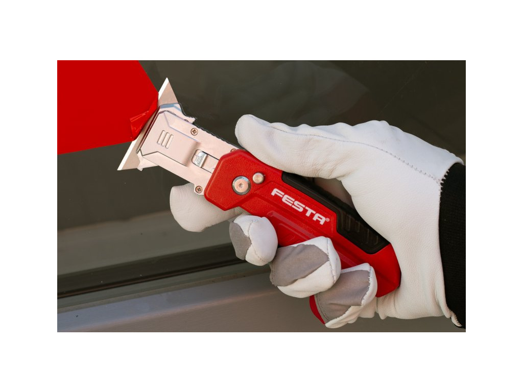- speciální konstrukce zavírací části umožňuje snadno přeměnit nůž na škrabku