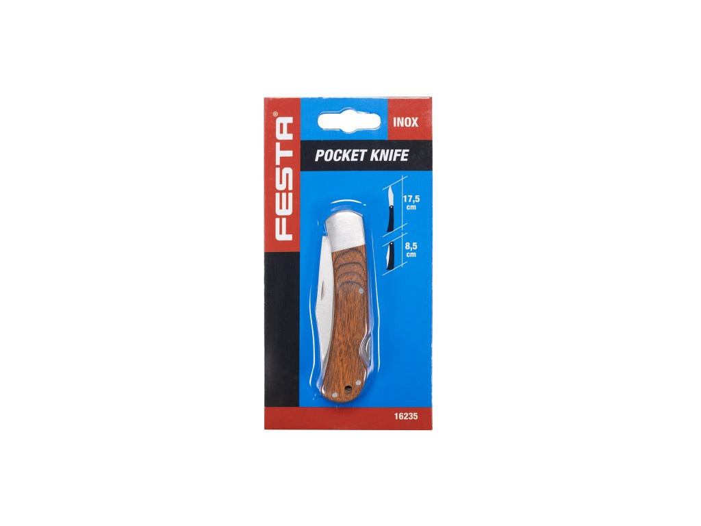 Nůž zavírací WOODY. Délka zavřeného nože je 100 mm. Nůž s velkým zavíracím nožem pro různé způsoby použití. Kvalitní dřevěná rukojeť. Zářez na čepeli pro snadné otevření. Hmotnost 0,642 kg.