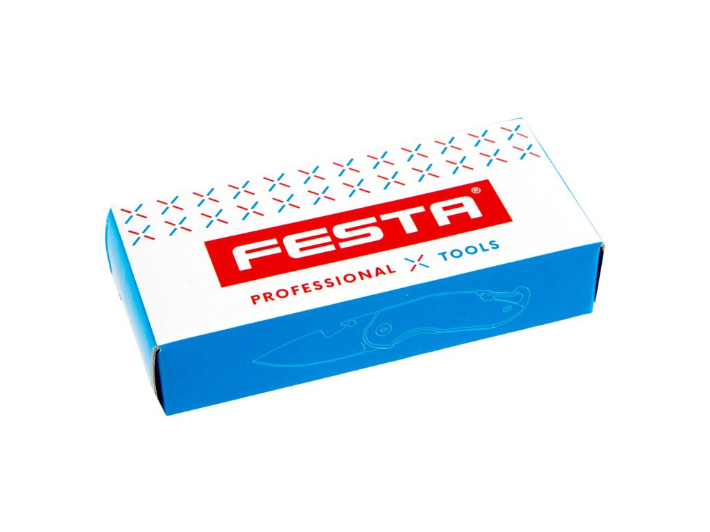 Malý kapesní nůž FESTA, kompatní rozměry, kvalitní čepel i zpracování, ostří zajištěno pojistkou proti zavření, karabina v rukojeti pro zavěšení na klíče, řetizek, atd., v čepeli výsek použitelný jako otvírák na lahve. Baleno v krabičce.