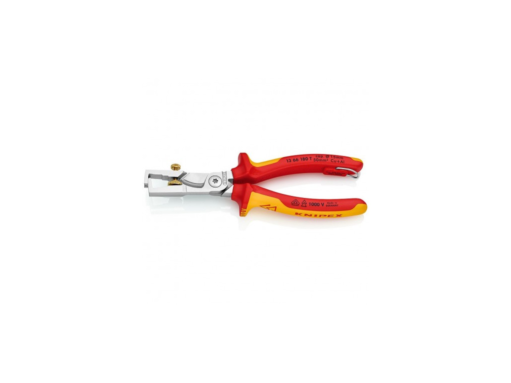 Pochromované kleště, Rukojeti izolované vícesložkovými návleki, certifikace VDE, s integrovaným izolovaným připevňovacím okem pro připevnění pojistky proti upadnutí