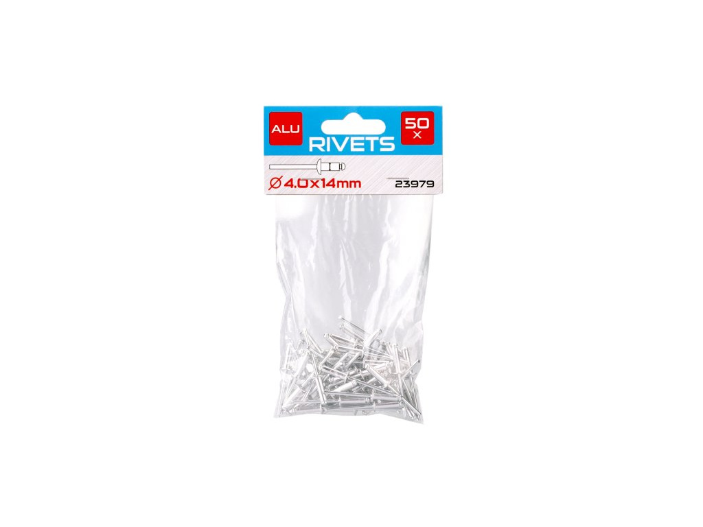 Klasické trhací slepé aluminiové nýty průměr 4,0 mm délka 14 mm v malém balení 50 kusů, vhodné pro malospotřebitele. Instruktážní video Instruktážní video