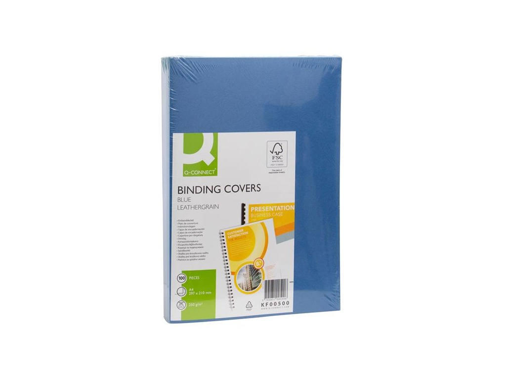 Obálka z 250 g/m2 kartonuPro plastové i drátěné hřbetyBalení 100 ksFormát: A4Gramáž: 250 g/m2Provedení: design kůžeBarva: modrá