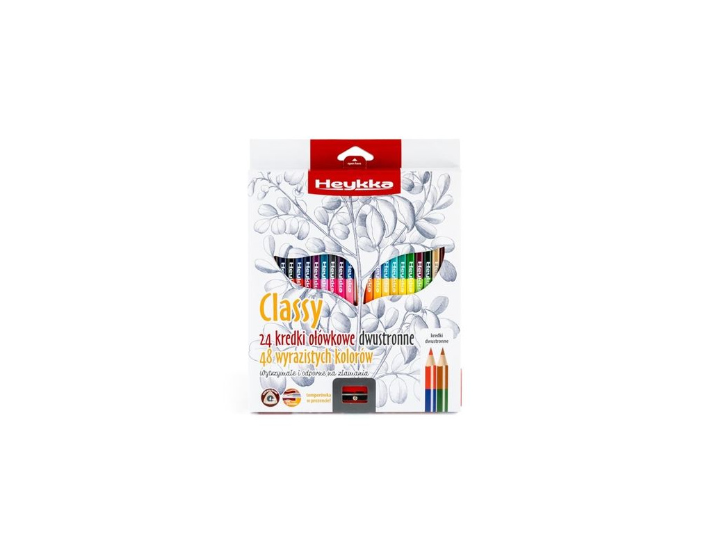 kvalitní oboustranné pastelky sada obsahuje celkem 48 barev (24 pastelek) vysoce kvalitní topolové dřevo pro snadné strouhání ergonomický trojhranný tvar vysoce odolná tuha, lepená po celé délce pastelky vysoce kvalitní pigment pro výrazné a zářivé barvy s vynikajícím krytím velmi lehké pro snadné kreslení a vybarvování silná tuha o průměru 4 mm ořezávátko je součást balení zdravotně nezávadné, splňující normu EN71 pro školní potřeby či běžné vybarvování vhodné pro děti od 8 let věku, starší školáky a dospělé papírová krabička s plastovým pouzdrem uvnitř chrání pastelky před poškozením