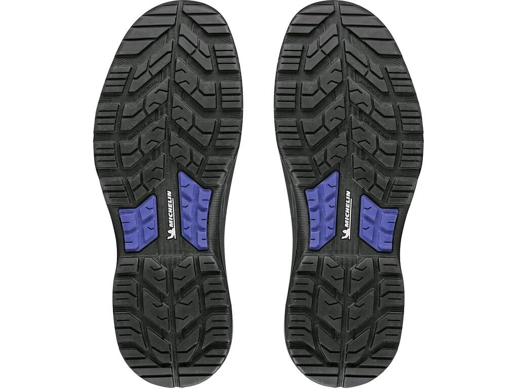 - Bezpečnost: Podešev s technologií PU/guma MICHELIN je olejivzdorná, antistatická a protiskluzová, což vás chrání před nebezpečnými situacemi.