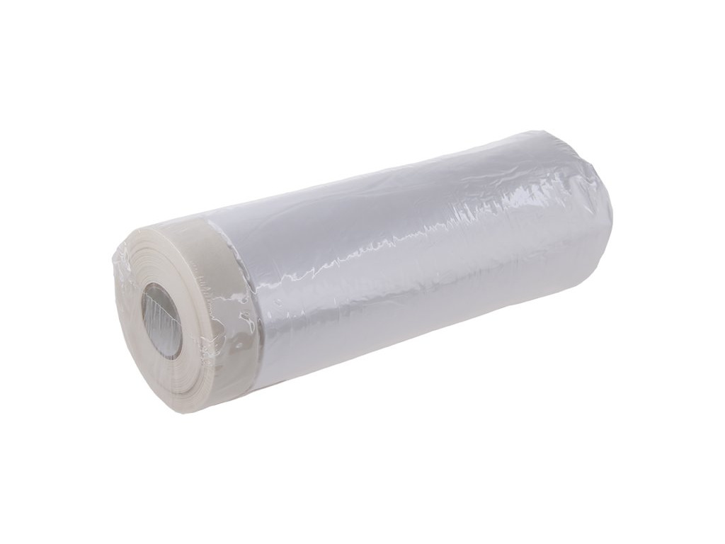 Krycí samolepící páska s folií, rozměr : 180 cm(rozvinutá šířka folie) x 30 m (délka návinu), použití : jako ochrana ploch proti znečištění, samolepící proužek umožnuje snadné uchycení, foliová část se po aplikaci - přilepení rozvine a chrání povrch od nečistot zejména při malování.