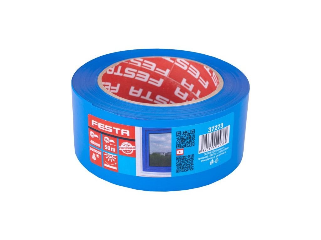 Maskovací páska PE, FESTA, UV odolná , lepivost 5,5N / 2,5 cm, rozměr : 48 mm x 50 m, použití : k ochraně proti znečištění, k vytvoření přesných a rovných hran - barevných přechodů při malování, díky UV stabilitě a plastičnosti vhodná zejména na fasády - velmi dobré přizpůsobení nerovným povrchům.
