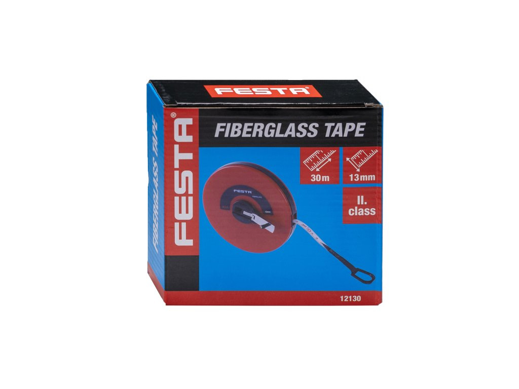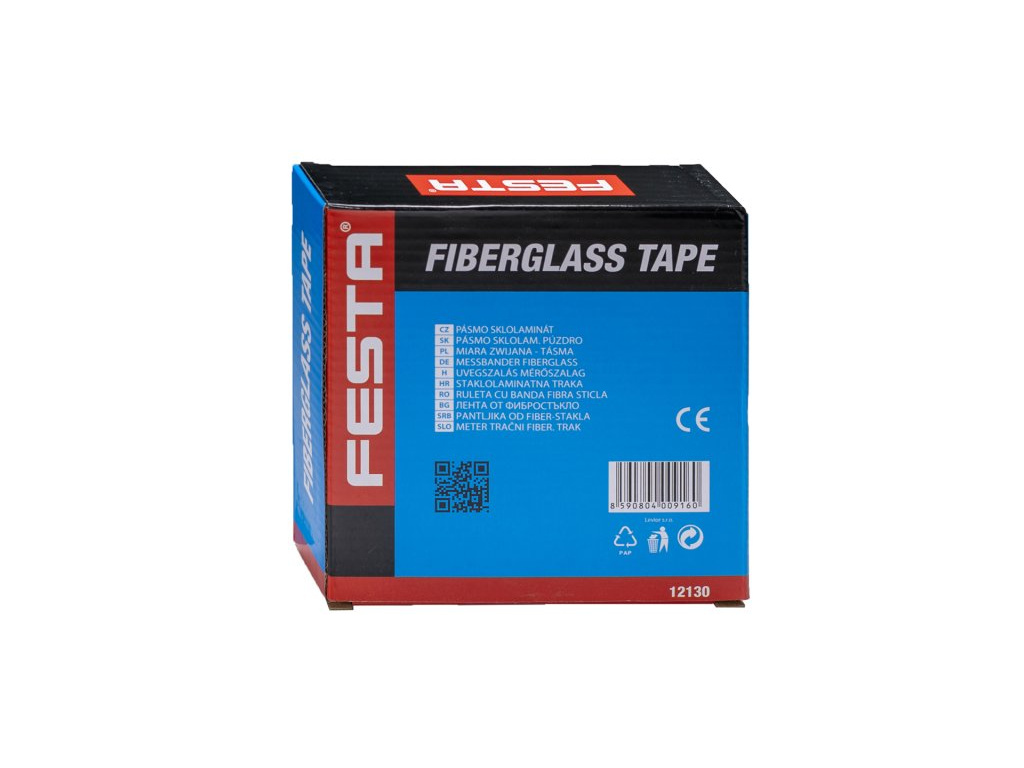 Kvalitní a přesné sklolaminátové pásmo, páska zakončená očkem s gumovou ochranou proti vytrhnutí, CE certifikát - vhodné ke kalibraci, sklopná navíjecí ručka, poutko.
