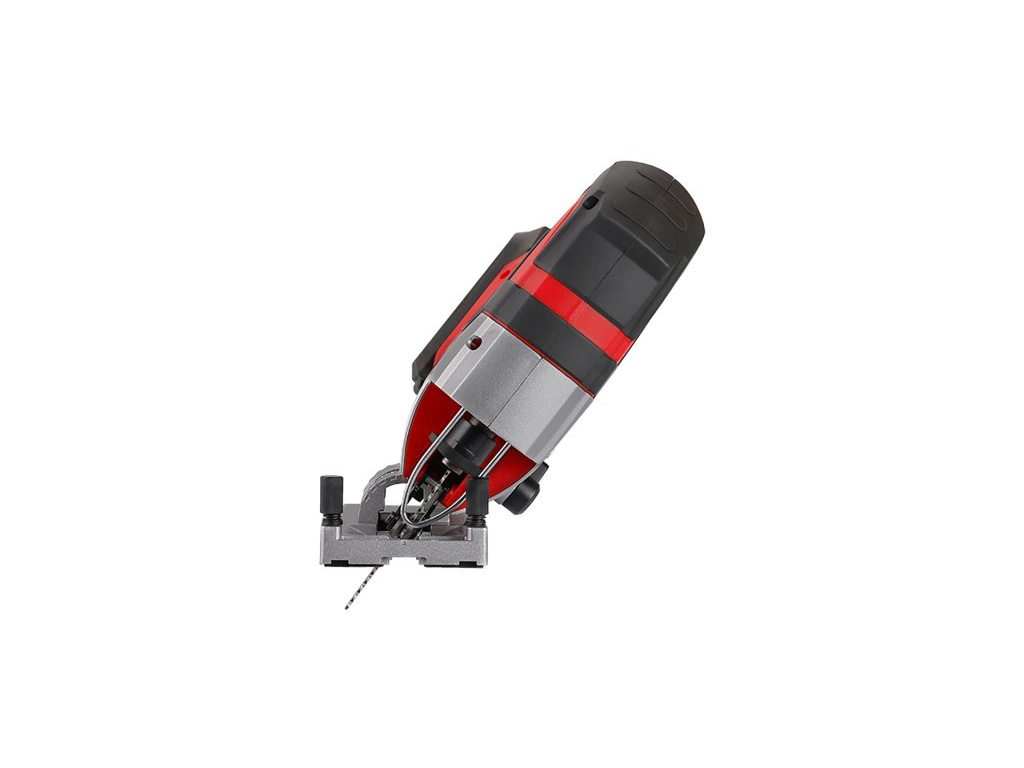 - bezpečnostní pojistka spínače proti náhodnému spuštění, ergonomicky tvarované úchopvé části pily pro pohodlné držení a manipulaci při práci, umístění ovládacích prvků uzpůsobené pro pravou i levou ruku, osvětlení řezné plochy
