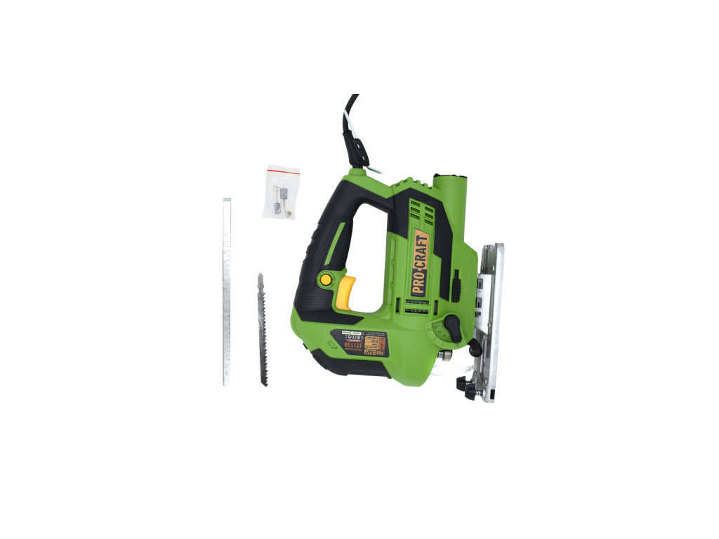 Přímočará pila Procraft ST1150 je určena k řezání dřevěných, ocelových a litinových materiálů. Silný motor s výkonem 750W a vývojem otáček 3000 zaručuje dlouhou bezporuchovou prací. Rychloupínání umožňuje snadnou a rychlou výměnu pilových listů. 3stupňové nastavení předkmitu usnadní řezání dřeva. Vybavena laserem, který usnadňuje kontrolu vedení řezu a ofukem zajistí čistotu řezaného materiálu. Možnost nastavení úhlu řezání v rozsahu ±45°. Součástí dodávky jsou imbusový klíč, pilový list na dřevo, adapter na vysavač, paralelní doraz. Balení karton.