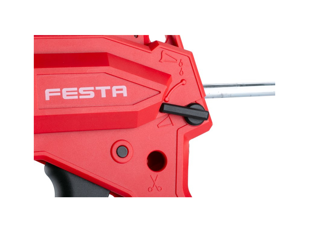 - dvě varianty vytlačování, přepínač v dolní poloze automatické zastavení úniku tmelu nebo lepidla - čistá práce bez zbytečného plýtvání, přepínač v horní poloze souvislé tmelení / lepení