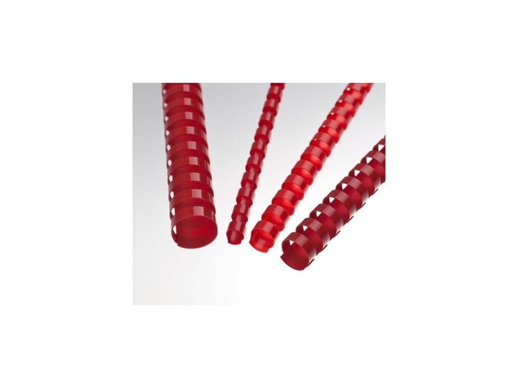 Plastový hřbet pro vazbu dokumentů Průměr 45 mm Kapacita 341 – 410 listů 80 g/m2 Formát A4 21 otvorů  Barva červená  Balení 50 ks