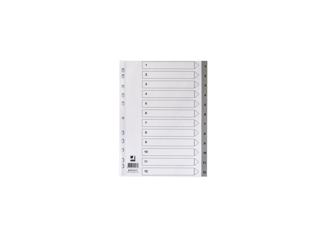 Plastový rejstřík Q-Connect A4, 1-12 bílý s šedou