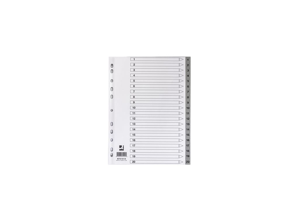 Plastový rejstřík Q-Connect A4 1-20, bílý s šedou