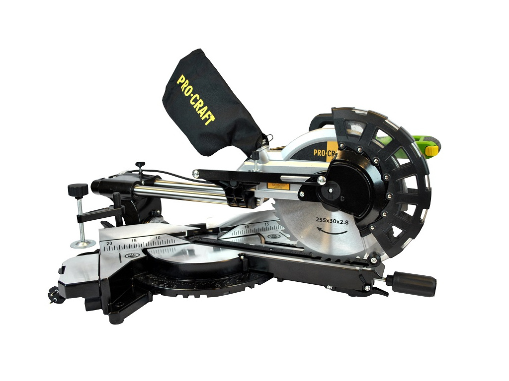 Pokosová pila Procraft PGS256 je určena k příčnému řezání měkkého tvrdého dřeva, lišt z plastu. Silný motor s příkonem 2000W a vysokých otáček až 4500 zaručuje vysoký řezný výkon. Možnost připojení vysavače přes hadici nebo zaručí čisté pracovní prostředí. Upevnění k pracovnímu stolu pomocí otvorů zaručuji vysokou stabilitu při práci. Vybavena čárovým laserem integrovaným ve stroji, který usnadňuje kontrolu řezu a zaručuje vysokou přesnost. Součástí dodávky je kotouč, uhlíkové kartáče vak na prach, a imbusové klíče. Balení karton. Nastavitelný úhel náklonu a úhel příčného řezu. Prodlužovací výsuvné stolky s dorazem.