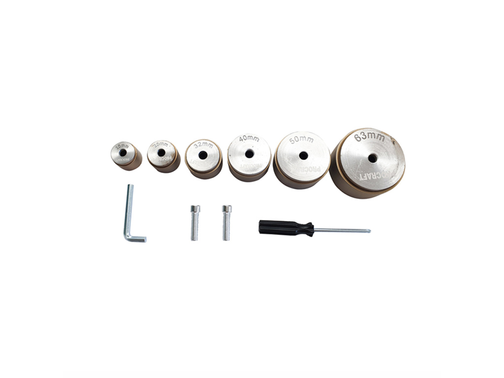Sada nástavců: obsahuje teflonové nástavce D20/25/32/40/50/63mm, které umožňují svařování běžně používaných průměrů potrubí.