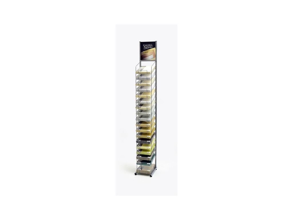 Prázdný stojan pro vystavení papírů a diplomů Stabilní konstrukce s protikluzovými nožkami 18 přihrádek pro formát A4 Rozměr přihráddky 22 x 31 cm (výška 10 cm) Kapacita přihrádky 7 balení papíru A4 nebo 5 balení diplomů Barva: stříbrnošedá Rozměry: 26 x 33 x 195 cmStojan slouží výhradně k podpoře prodeje a propagaci výrobků značky Galeria PapieruV případě zájmu kontaktujte obchodní zástupce