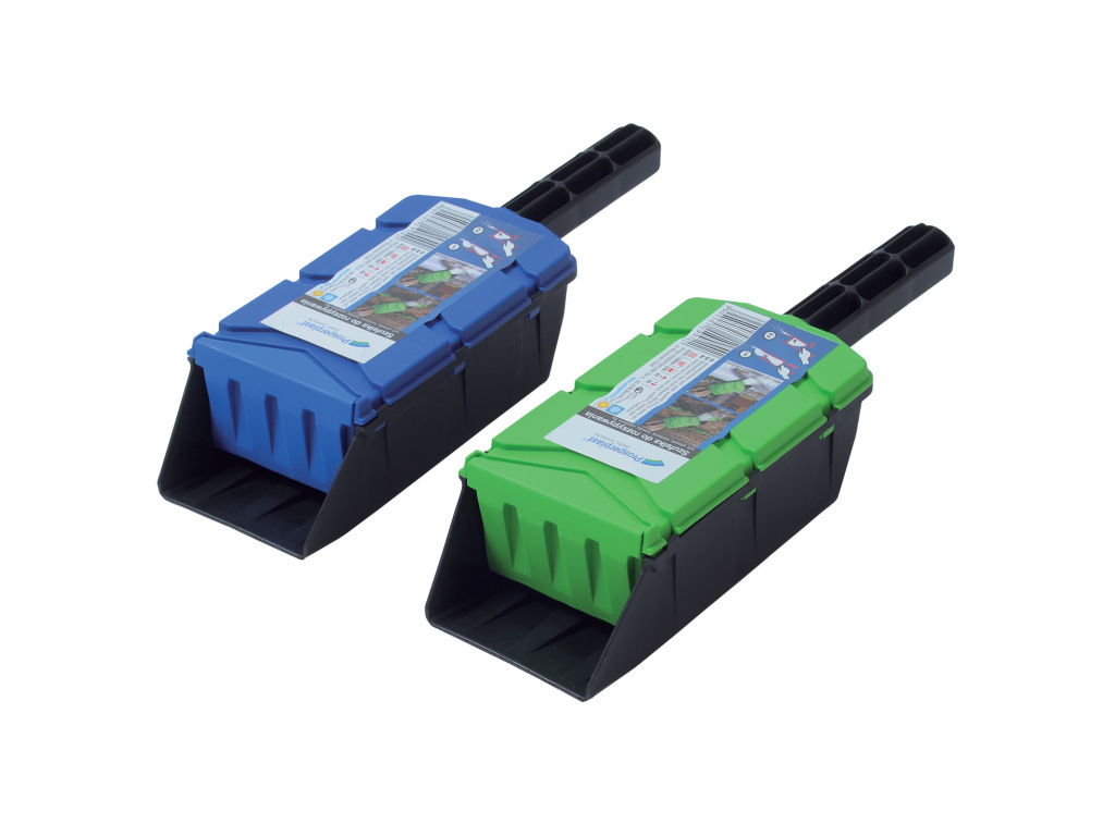 Posypová lopatka umožňuje přesné dávkování materiálu.Lze použít na aplikaci hnojiv a osiv.