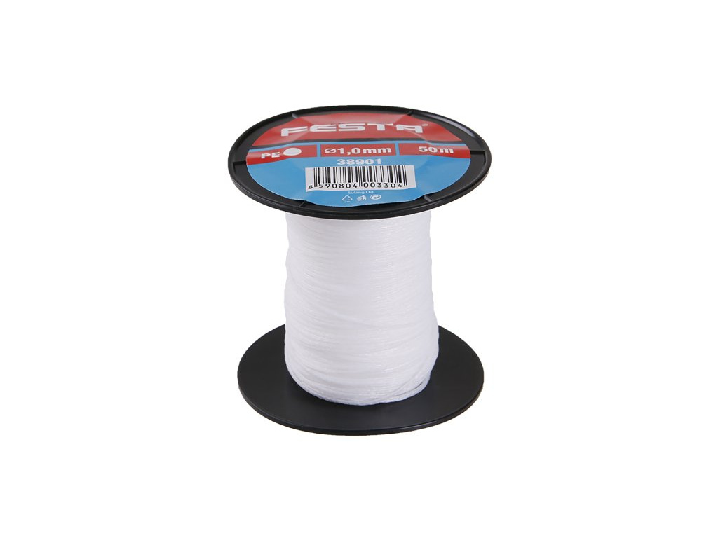 Zednický provázek FESTA, materiál PE ( polyethylen ), odolný proti vodě, splétaný - vynikající vlastnosti v tahu, cívka - návin 50 m, použití : ve stavebnictví, v domacnosti, na zahradě…, .