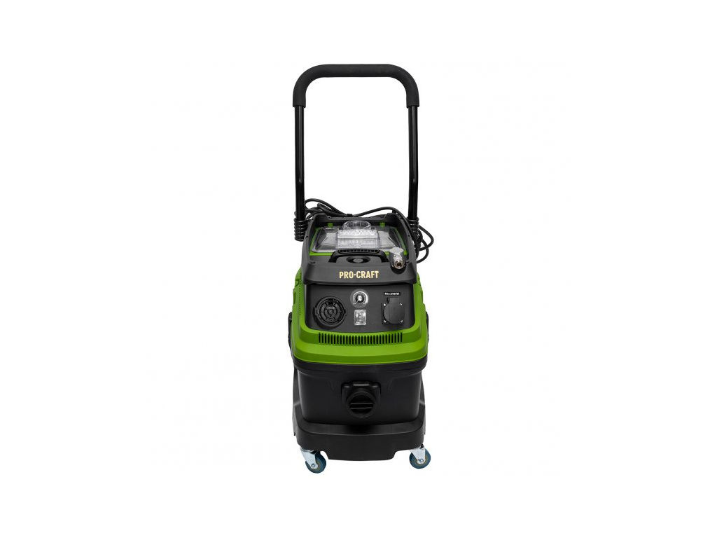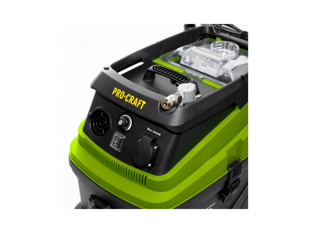 Průmyslový vysavač Procraft VP2000 je určen k mokrému i suchému vysávání. Je možné ho použít na staveništích, dílnách truhlářských a lakovacích provozech, ale i jako domácí vysavač, nebo k vysávání auta. Je vhodný pro odstraňování třísek, pilin a sádrového prachu. Vysavač má 4 m sací hadici a telekopicky nastavitelnou ocelovou trubku Silný motor s příkonem 1600 W zaručuje vysoký sací výkon o 18kPa a dokáže tak účině vysát prach ze strojů a těžší nečistoty ze stavby. Poradí si s rozlitou vodou, kterou vysává do nádoby (čištění koberců). Plynulou regulace sací síly, manuální oklep prachových filtrů. Rychloupínací spony usnadní výměnu pytlů. Automatický systém zapínání integrovanou zásuvkou 230V včetně funkce doběhu usnadní práci. Vysavač je dobře pojízdným díky kombinaci dvou velkých kol a dvou otočných, vybaven pohodlnou rukojetí pro přenášení. Součástí dodávky je odsávací hadice, hepa filtr, teleskopická kovová trubka, hubice, sáčky a kola. Balení karton.