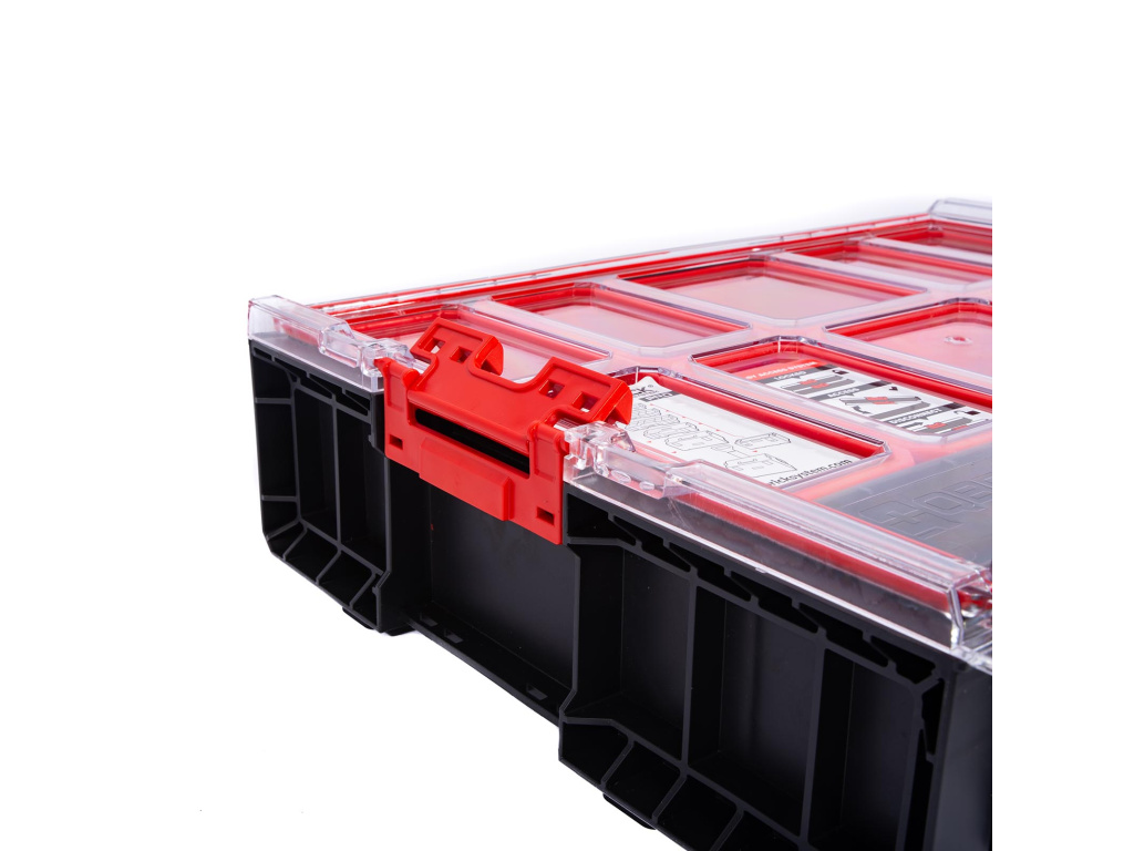 Organizér má uvnitř 8 organizérů pro organizaci drobných spojovacích materiálů (např. šrouby, vruty, háčky atd.)Disponuje odolným víkem z polykarbonátu, má těsnění ve víku.